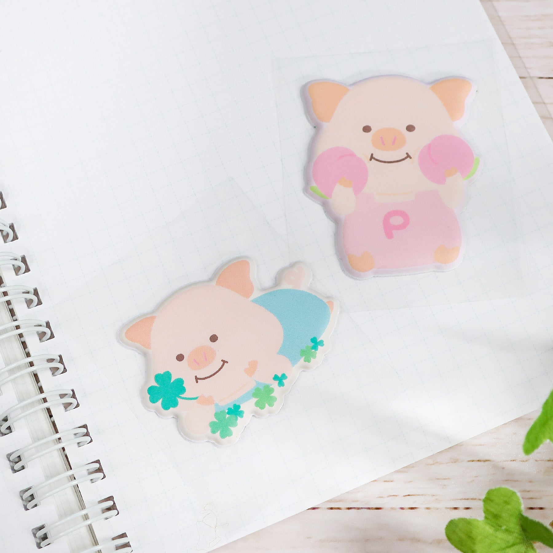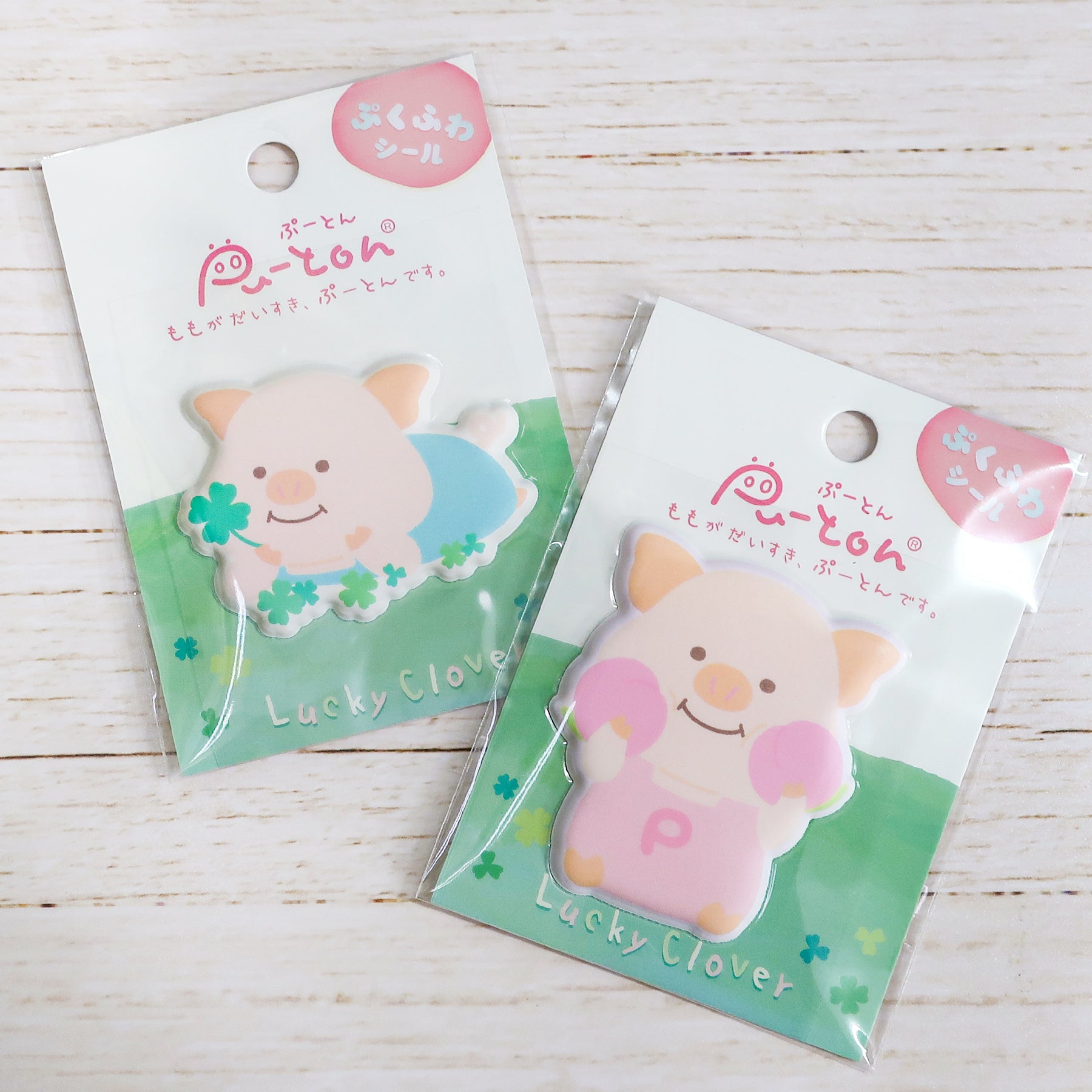 ももが大好き、こぶたの「ぷーとん」が、立体的なシールになりました。